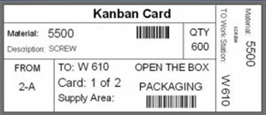 Au départ il s’agissait d’une fiche cartonnée issue du système Toyota permettant de limiter la production d’un poste en amont d’une chaîne de travail aux besoins exacts du poste en aval. Ceci donne un flux tendu, minimise les inventaires et résulte en une cadence de production.